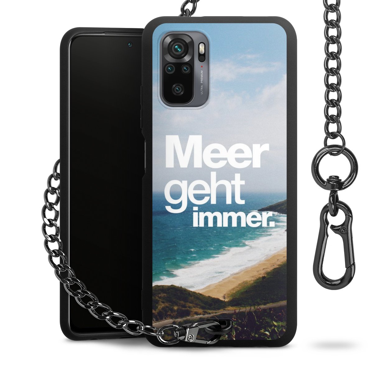 • Mattschwarze Handyhülle mit Metallkette