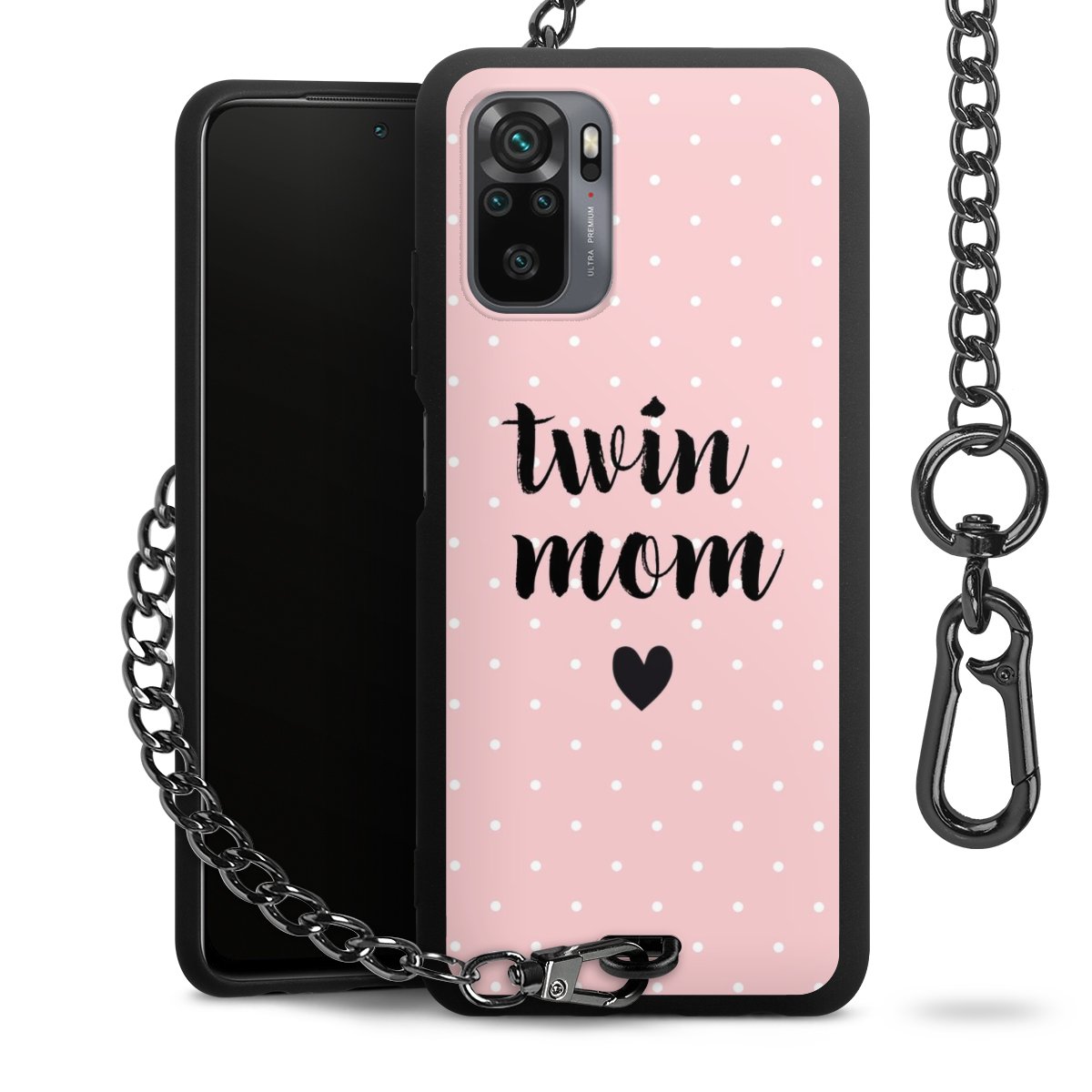 • Mattschwarze Handyhülle mit Metallkette