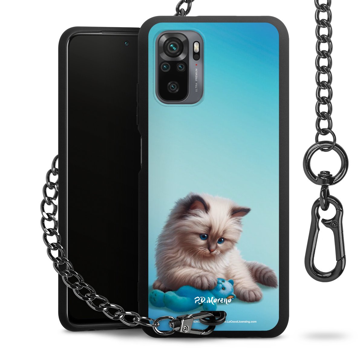 Die mattschwarze Silikon-Handyhülle besteht aus robustem TPU (thermoplastisches Polyurethan). Sie ist flexibel und schützt Dein Smartphone vor Stößen und Kratzern. Die Kette sowie der Karabinerhaken sind aus Metall in Gunmetal-Optik gefertigt. Für dieses Produkt kommen ausschließlich TÜV-geprüfte Materialien zum Einsatz.