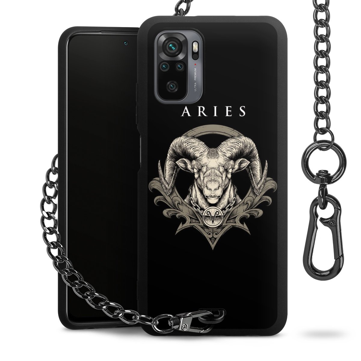 Die mattschwarze Silikon-Handyhülle besteht aus robustem TPU (thermoplastisches Polyurethan). Sie ist flexibel und schützt Dein Smartphone vor Stößen und Kratzern. Die Kette sowie der Karabinerhaken sind aus Metall in Gunmetal-Optik gefertigt. Für dieses Produkt kommen ausschließlich TÜV-geprüfte Materialien zum Einsatz.
