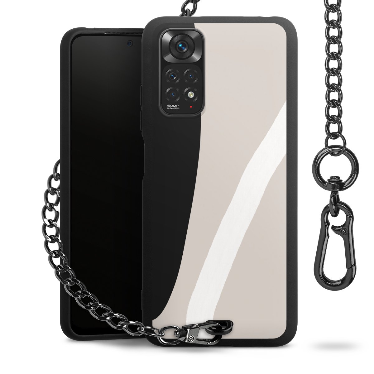 • Mattschwarze Handyhülle mit Metallkette