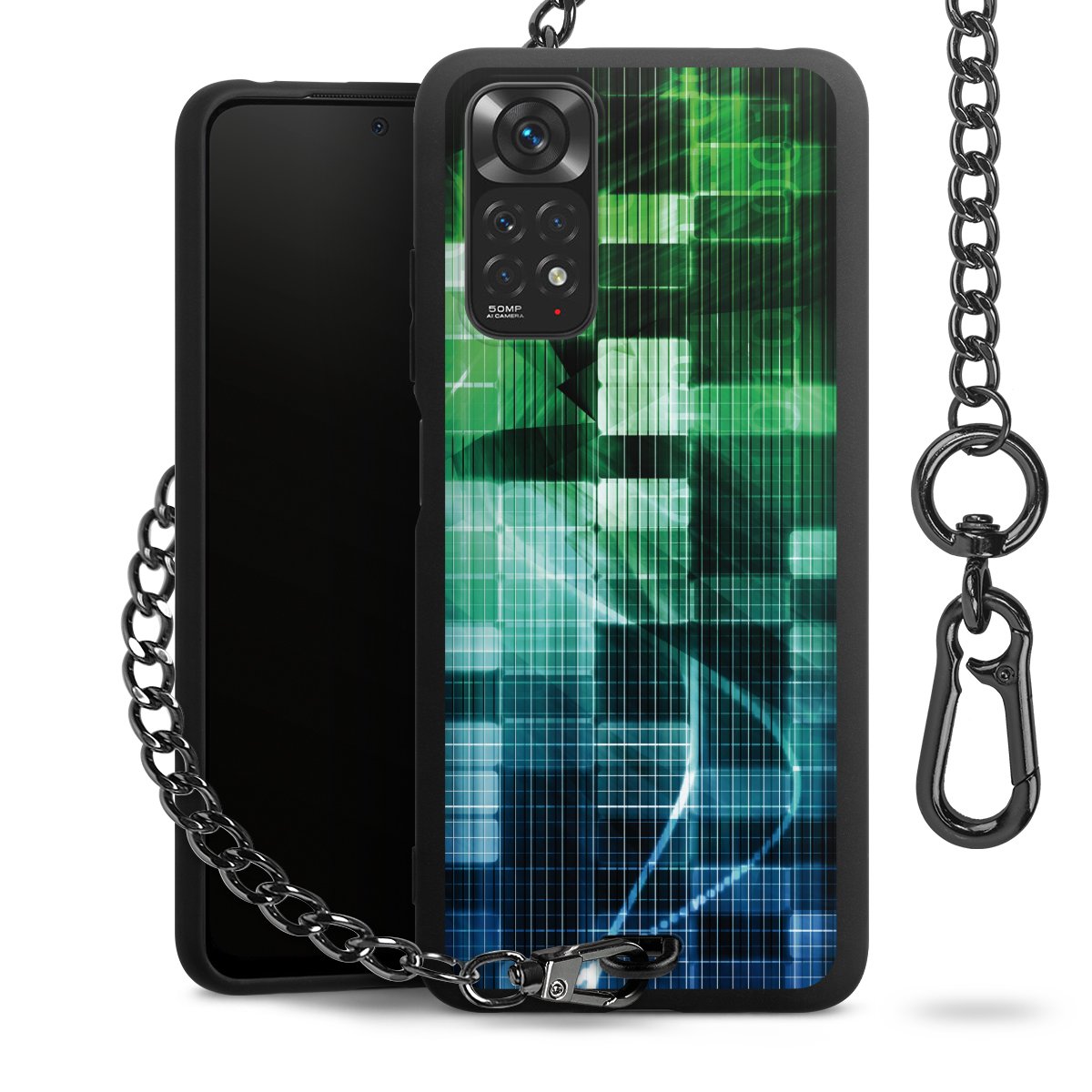 - Mattschwarze Handyhülle mit Metallkette