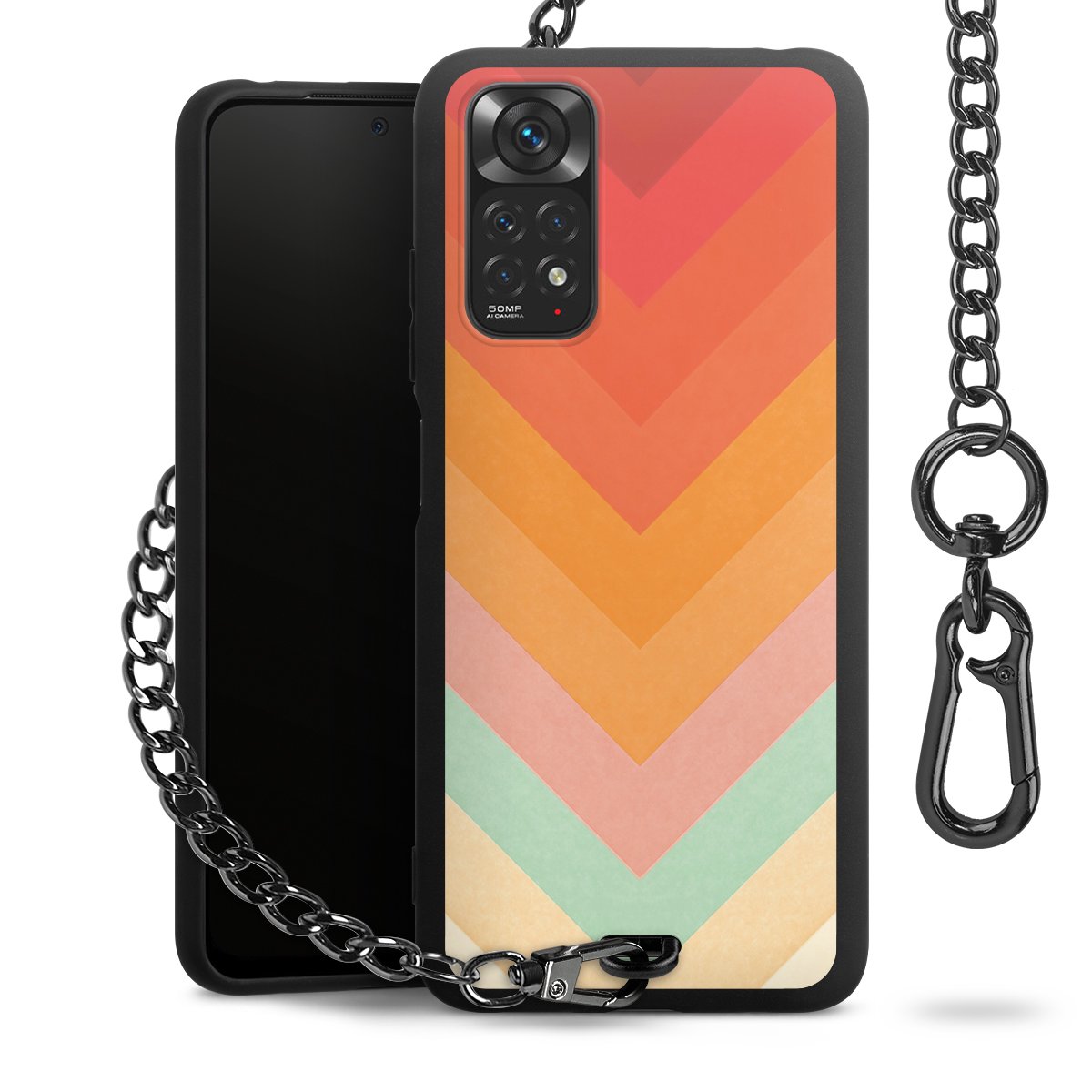 • Mattschwarze Handyhülle mit Metallkette