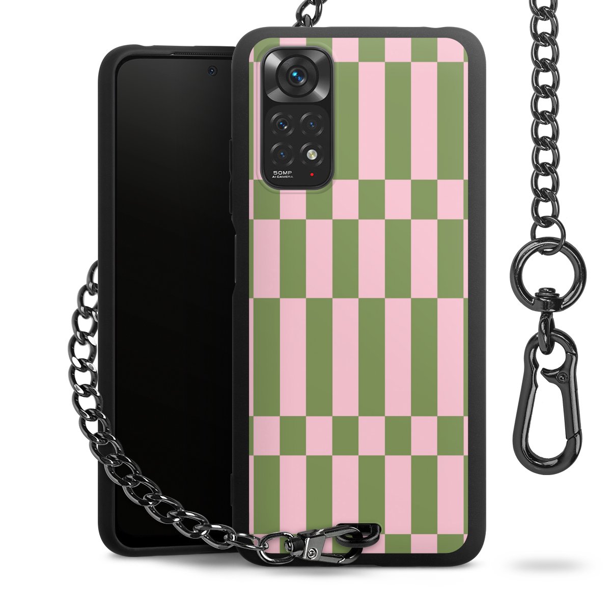 • Mattschwarze Handyhülle mit Metallkette