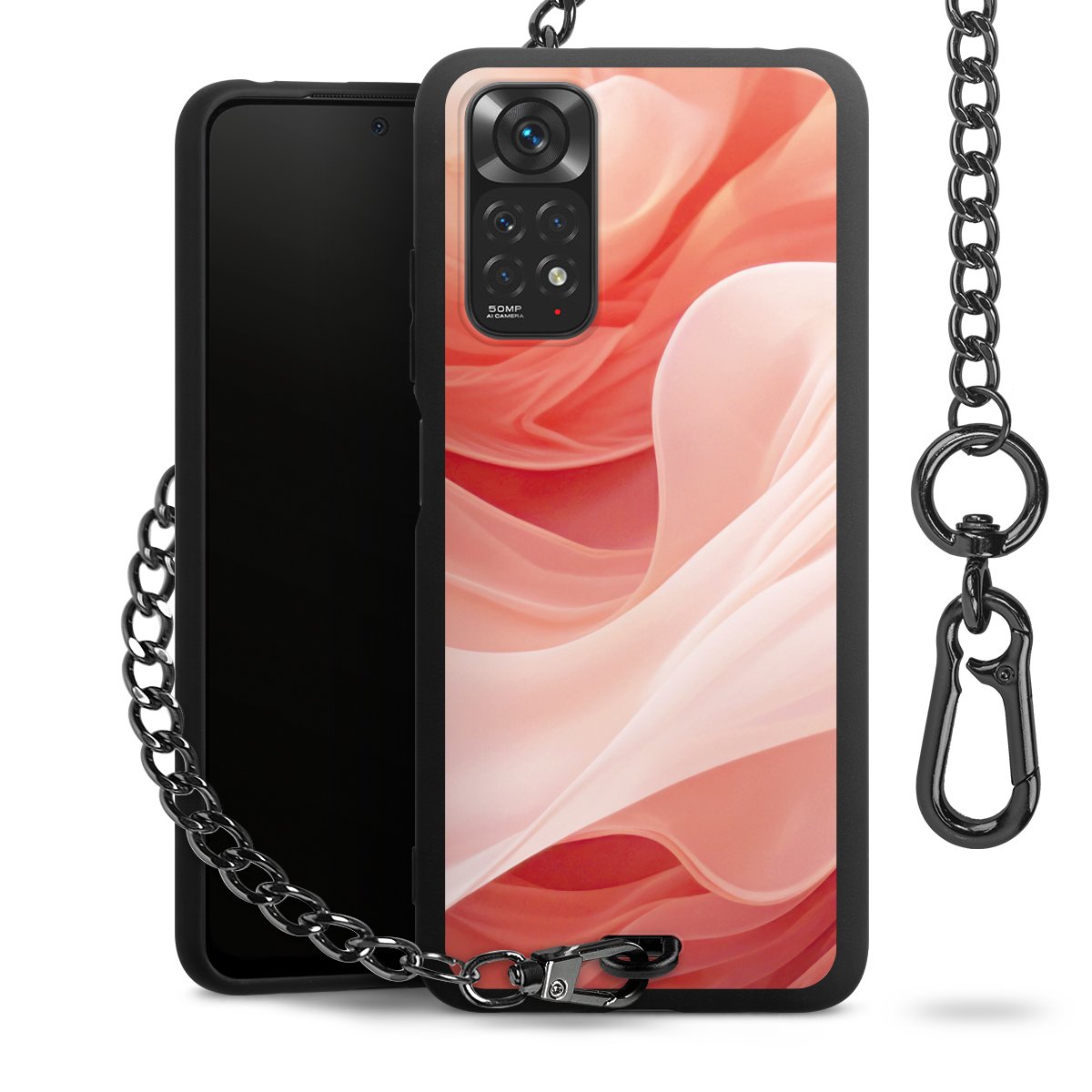 • Mattschwarze Handyhülle mit Metallkette