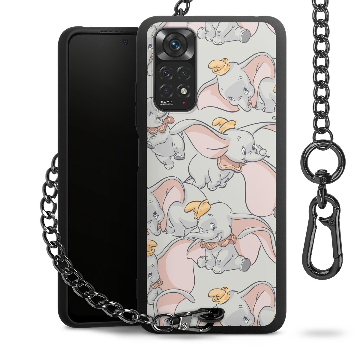 • Mattschwarze Handyhülle mit Metallkette