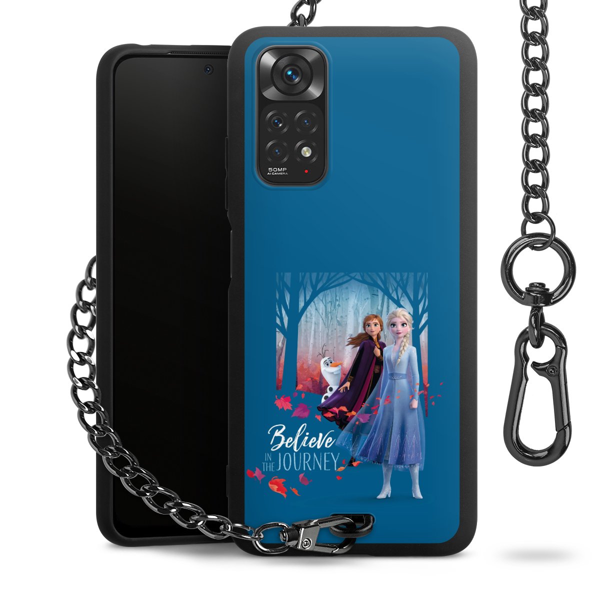 • Mattschwarze Handyhülle mit Metallkette