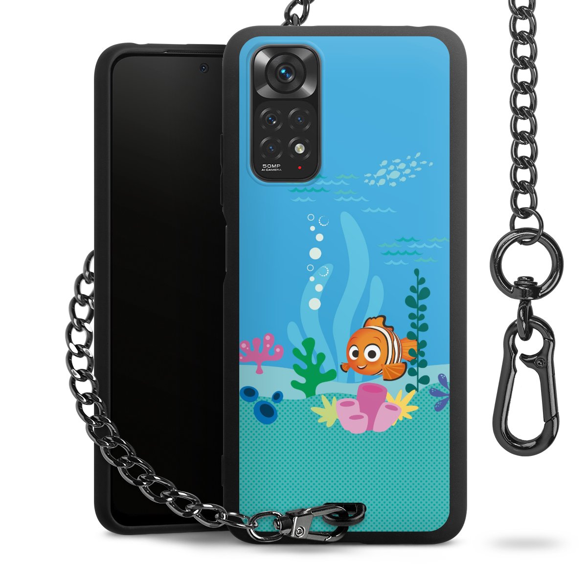 - Mattschwarze Handyhülle mit Metallkette