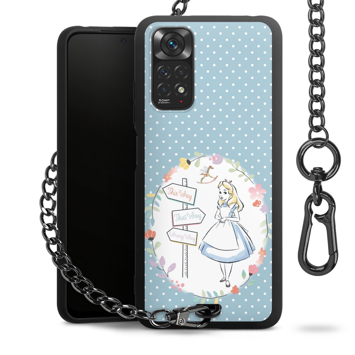 Die Handyhülle verfügt über eine mittig am unteren Rand platzierte Öse, an der die Metallkette stabil befestigt ist. Bestelle die Hülle einfach für Dein Smartphone-Modell, dann passt sie wie angegossen und Du brauchst sie bloß einmal anzudrücken. Handy in die Tasche, Karabiner an den Hosenbund – schon kann die Party starten.