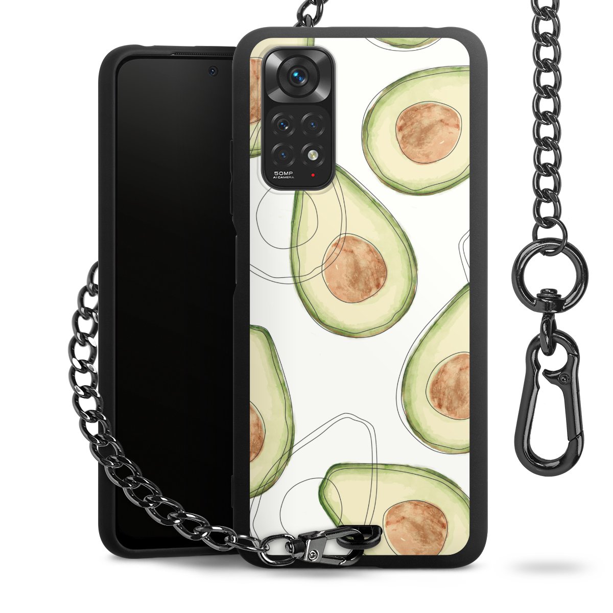 • Mattschwarze Handyhülle mit Metallkette