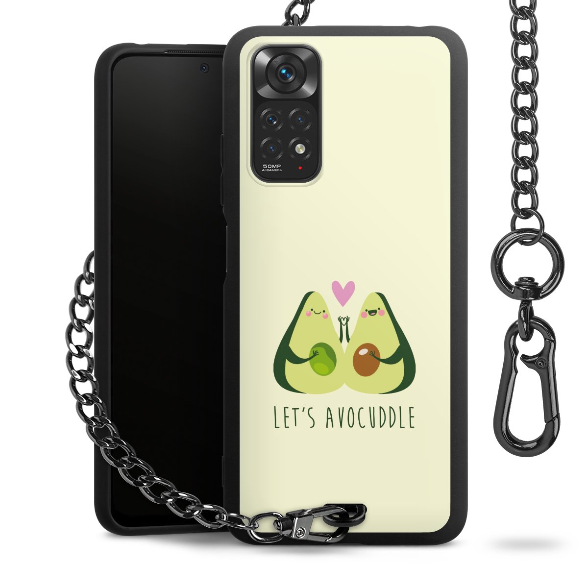 Die mattschwarze Silikon-Handyhülle besteht aus robustem TPU (thermoplastisches Polyurethan). Sie ist flexibel und schützt Dein Smartphone vor Stößen und Kratzern. Die Kette sowie der Karabinerhaken sind aus Metall in Gunmetal-Optik gefertigt. Für dieses Produkt kommen ausschließlich TÜV-geprüfte Materialien zum Einsatz.