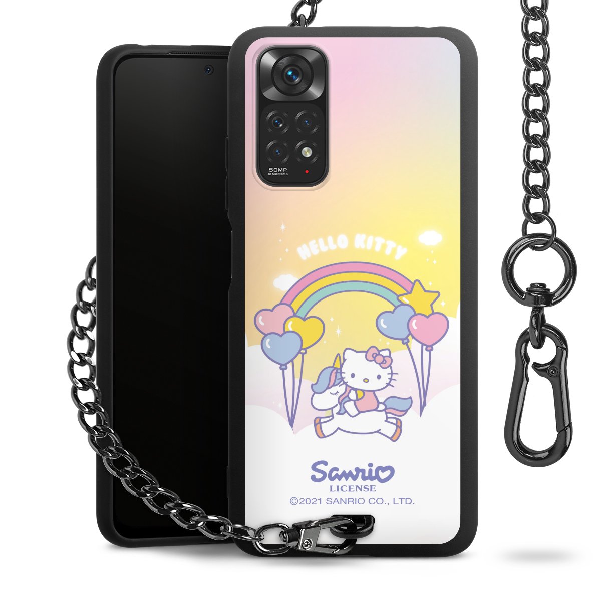 Die mattschwarze Silikon-Handyhülle besteht aus robustem TPU (thermoplastisches Polyurethan). Sie ist flexibel und schützt Dein Smartphone vor Stößen und Kratzern. Die Kette sowie der Karabinerhaken sind aus Metall in Gunmetal-Optik gefertigt. Für dieses Produkt kommen ausschließlich TÜV-geprüfte Materialien zum Einsatz.