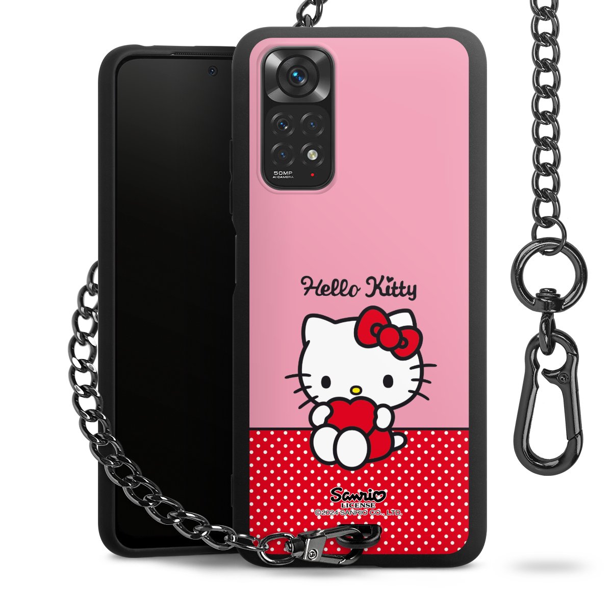 Die mattschwarze Silikon-Handyhülle besteht aus robustem TPU (thermoplastisches Polyurethan). Sie ist flexibel und schützt Dein Smartphone vor Stößen und Kratzern. Die Kette sowie der Karabinerhaken sind aus Metall in Gunmetal-Optik gefertigt. Für dieses Produkt kommen ausschließlich TÜV-geprüfte Materialien zum Einsatz.
