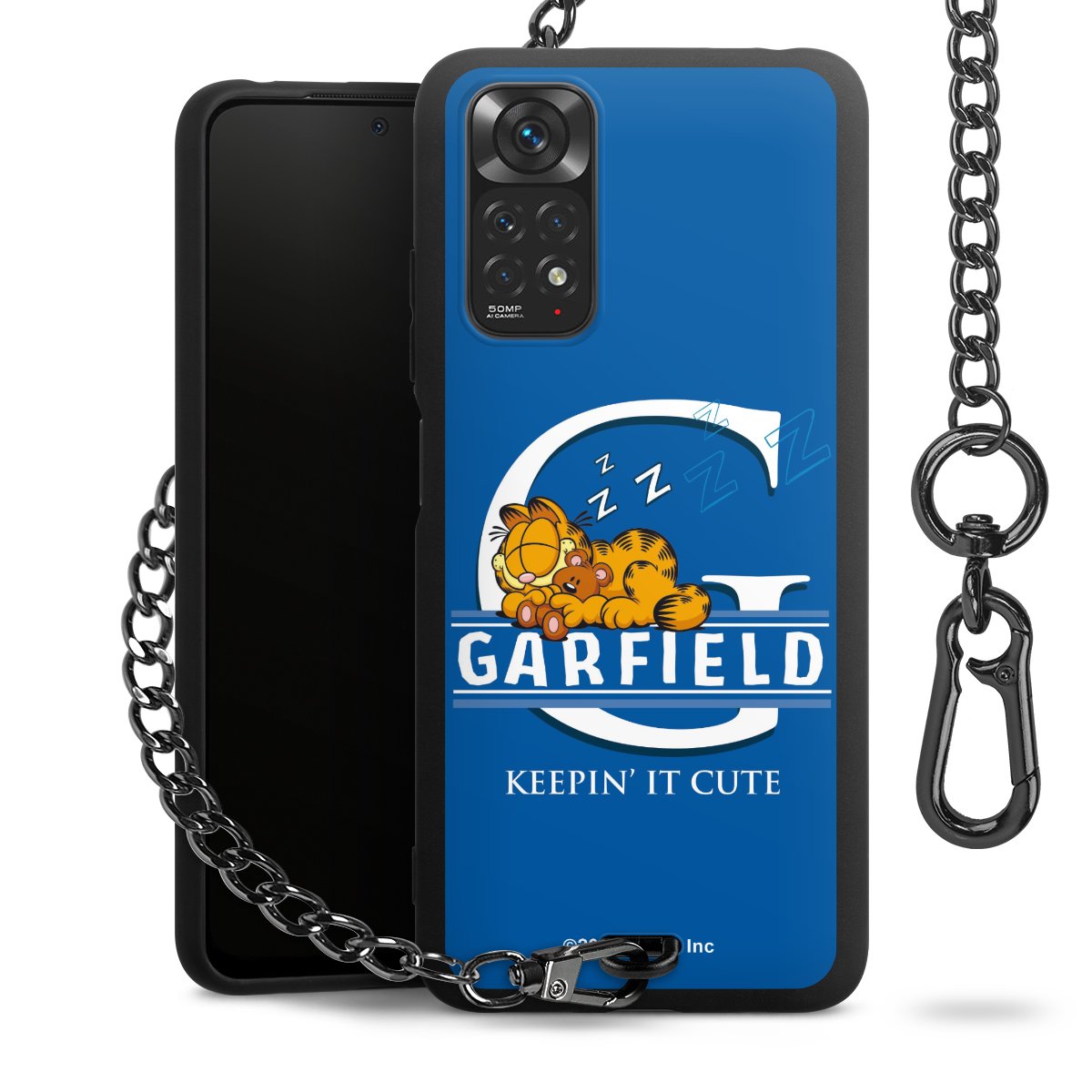 - Mattschwarze Handyhülle mit Metallkette