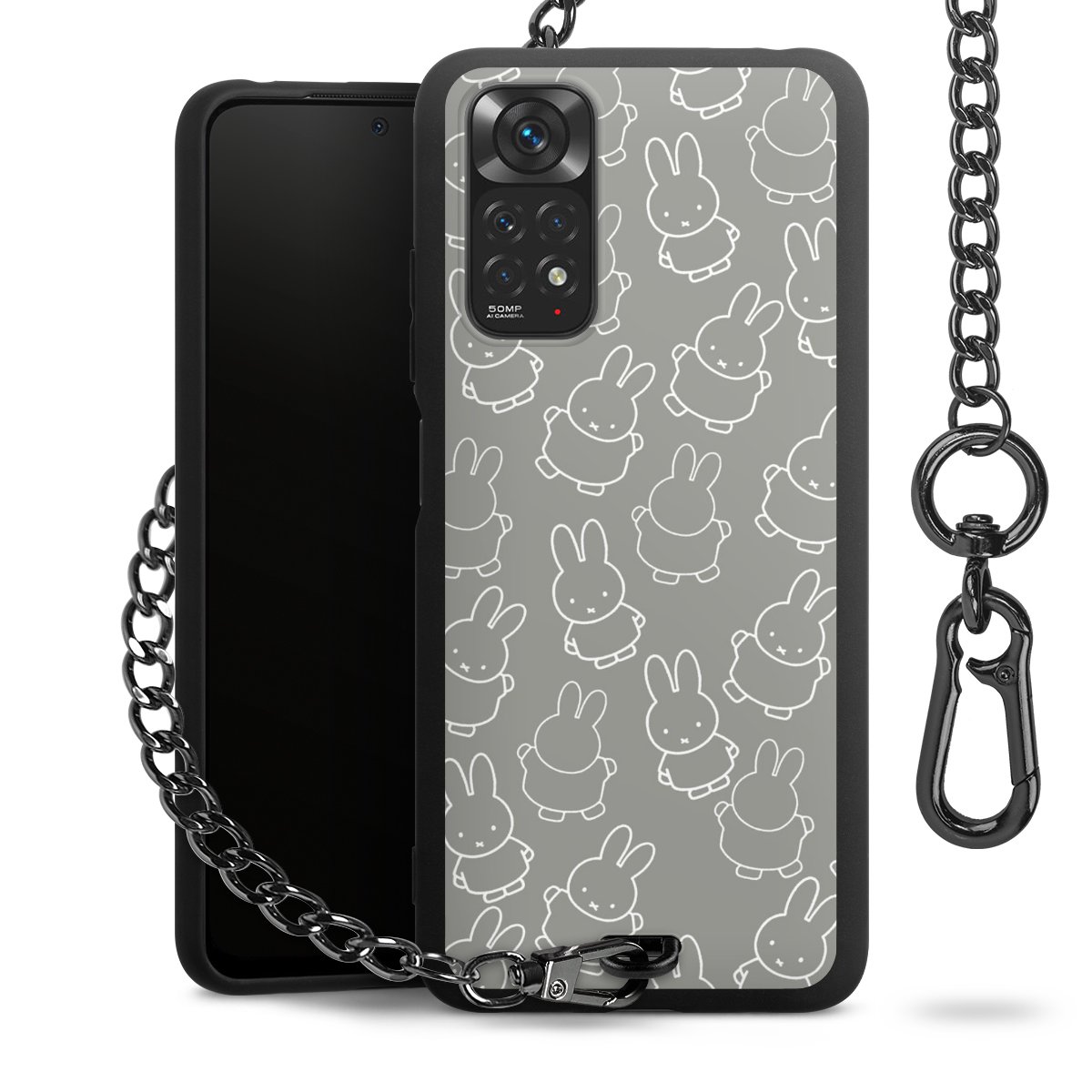 • Mattschwarze Handyhülle mit Metallkette