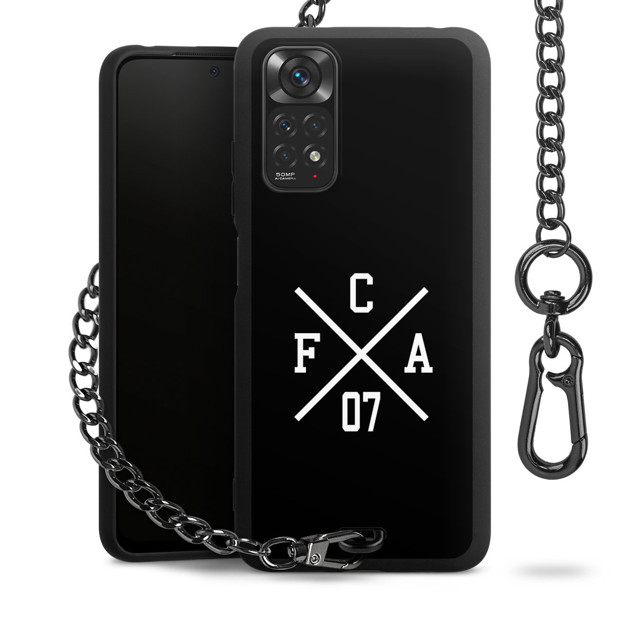 • Mattschwarze Handyhülle mit Metallkette
