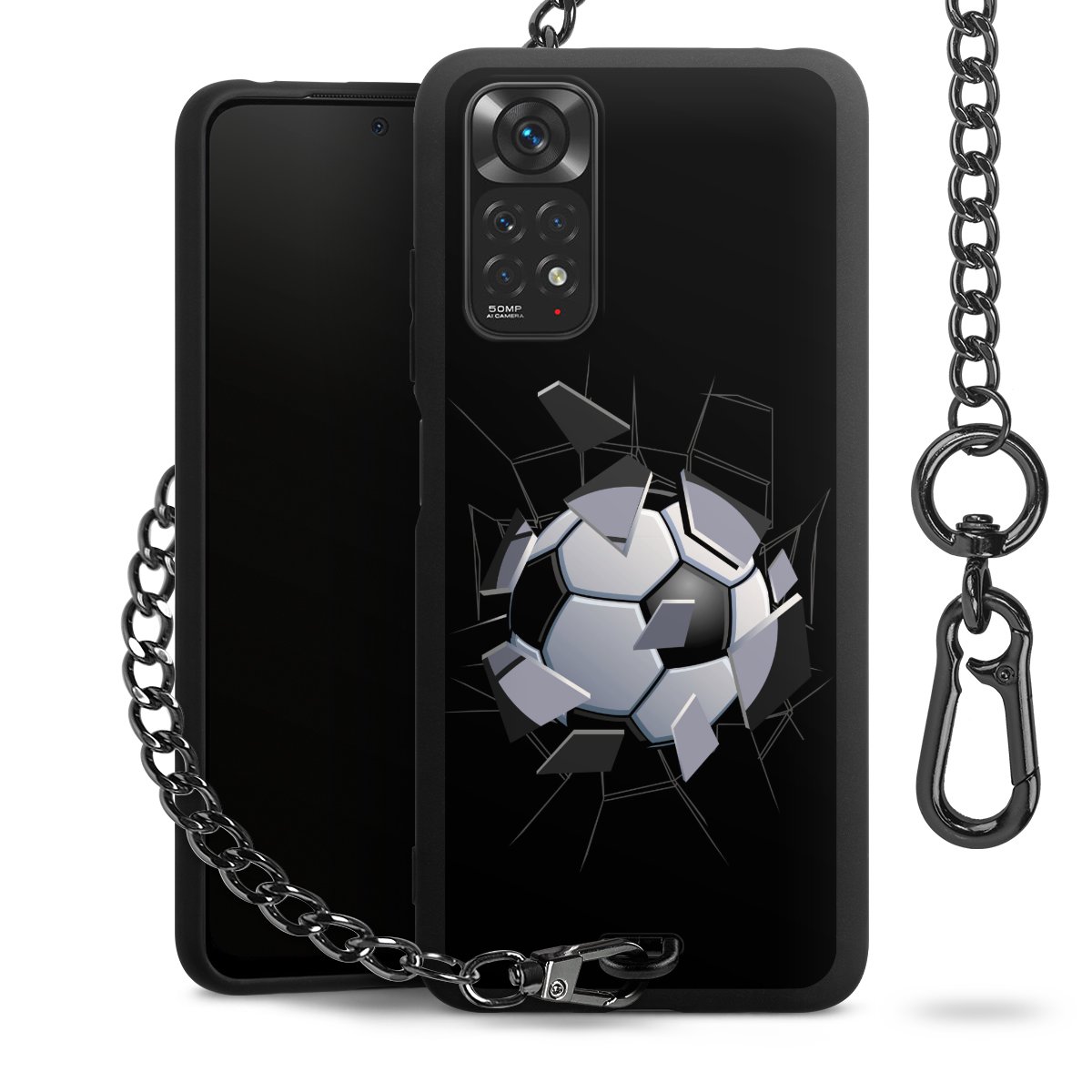 • Mattschwarze Handyhülle mit Metallkette