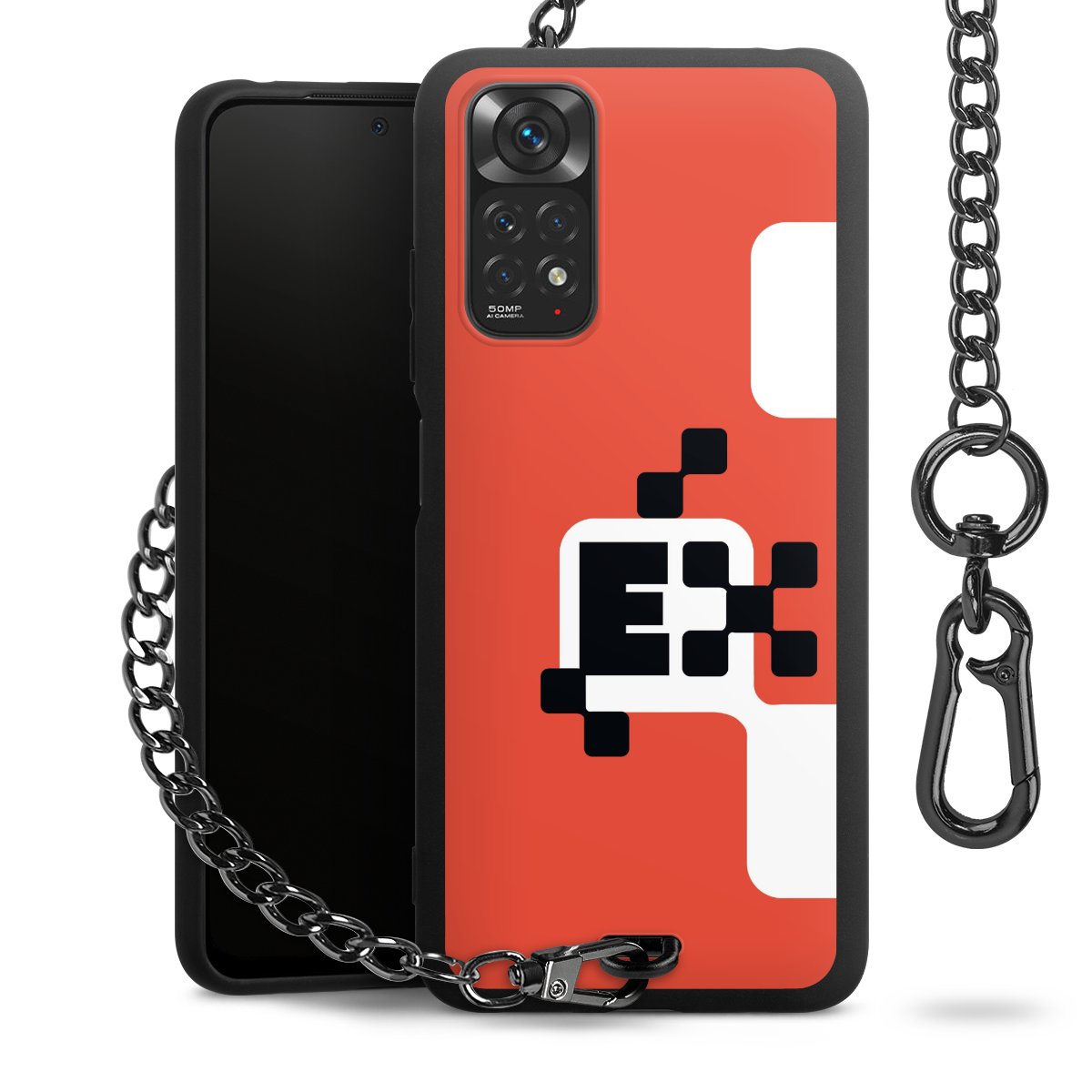 - Mattschwarze Handyhülle mit Metallkette