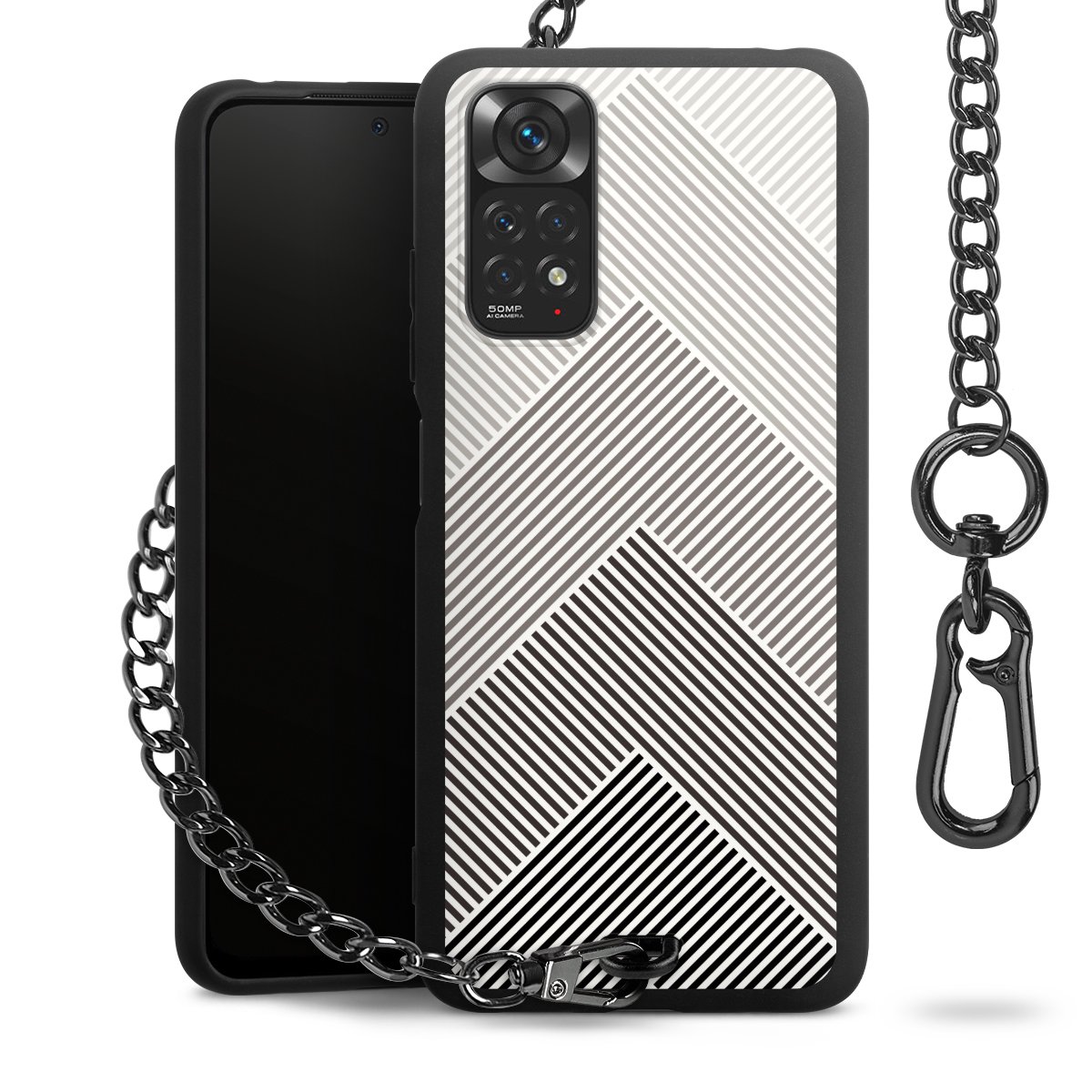 • Mattschwarze Handyhülle mit Metallkette