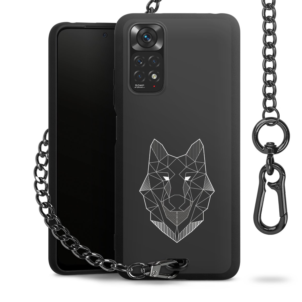 - Mattschwarze Handyhülle mit Metallkette