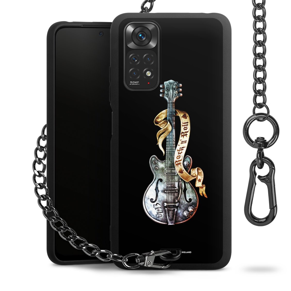 • Mattschwarze Handyhülle mit Metallkette