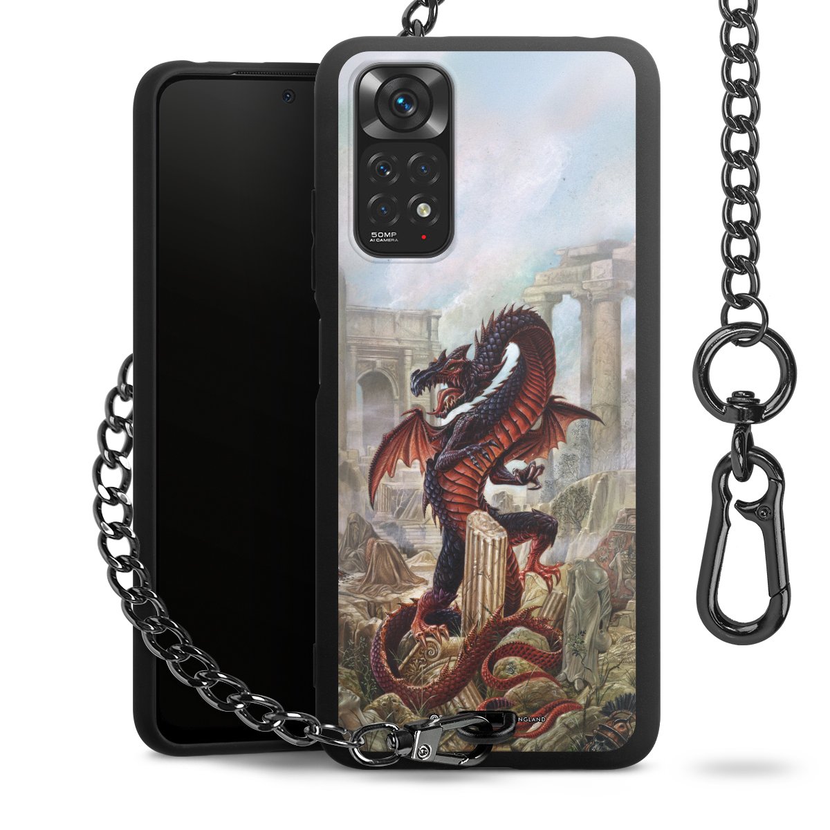 Die mattschwarze Silikon-Handyhülle besteht aus robustem TPU (thermoplastisches Polyurethan). Sie ist flexibel und schützt Dein Smartphone vor Stößen und Kratzern. Die Kette sowie der Karabinerhaken sind aus Metall in Gunmetal-Optik gefertigt. Für dieses Produkt kommen ausschließlich TÜV-geprüfte Materialien zum Einsatz.