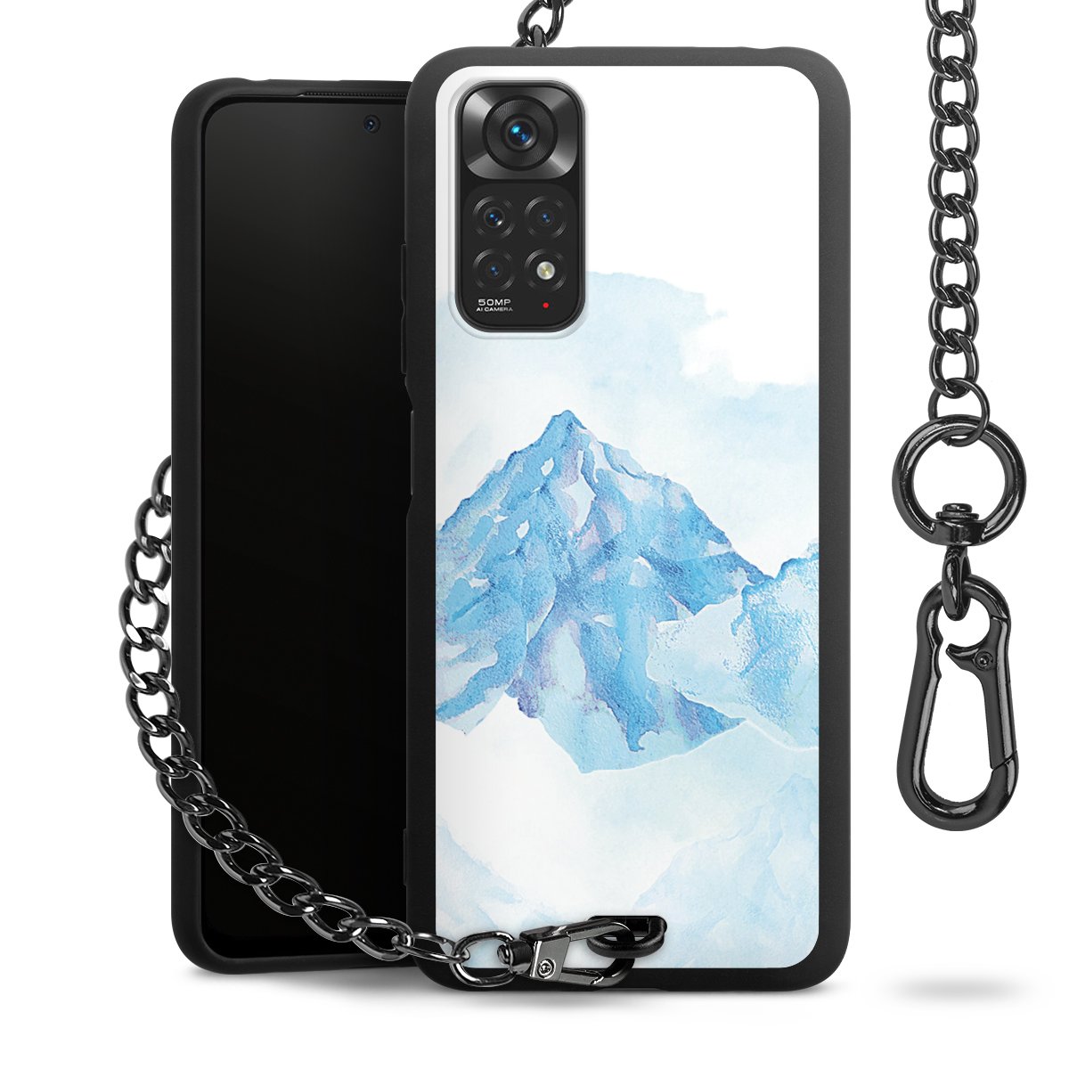 - Mattschwarze Handyhülle mit Metallkette