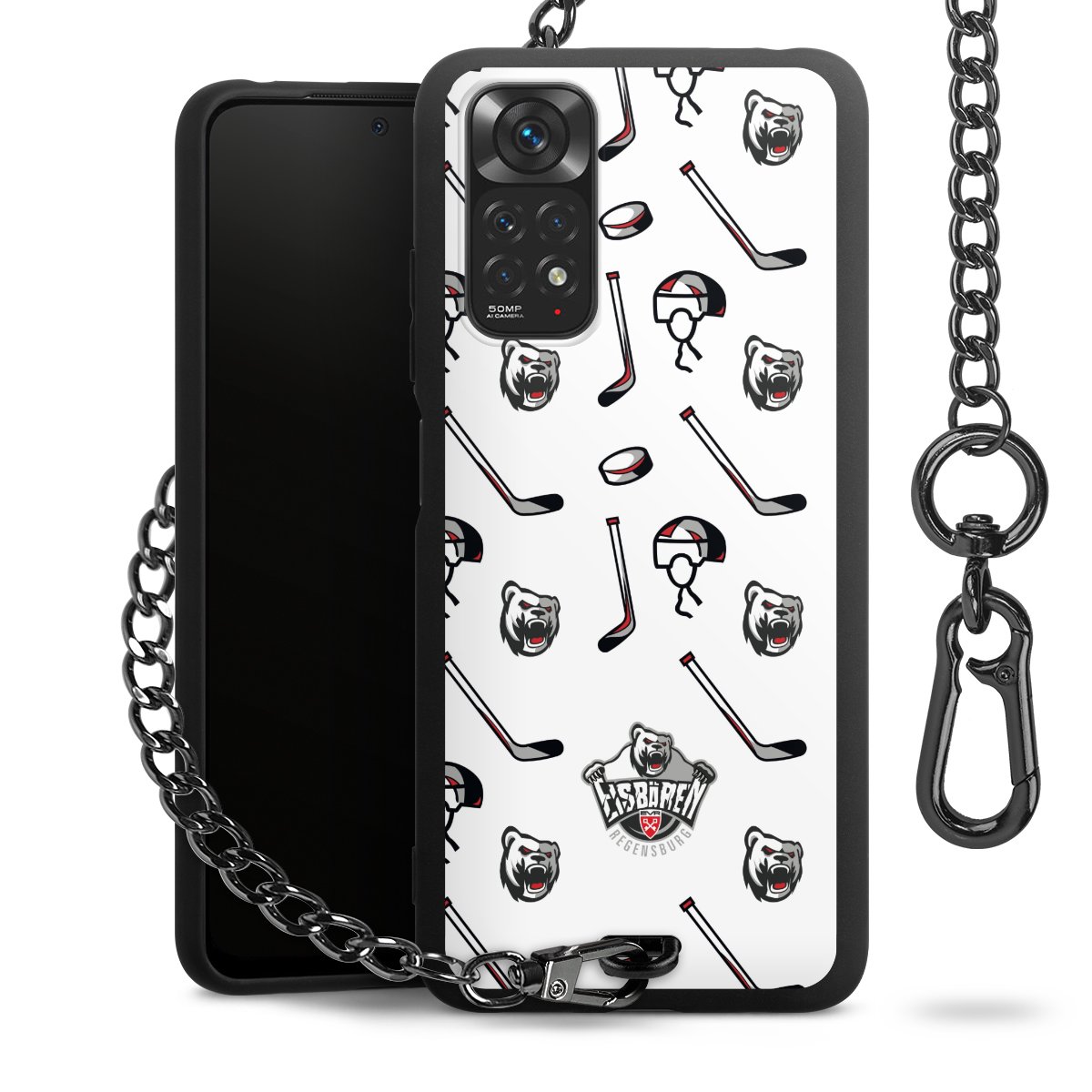 - Mattschwarze Handyhülle mit Metallkette