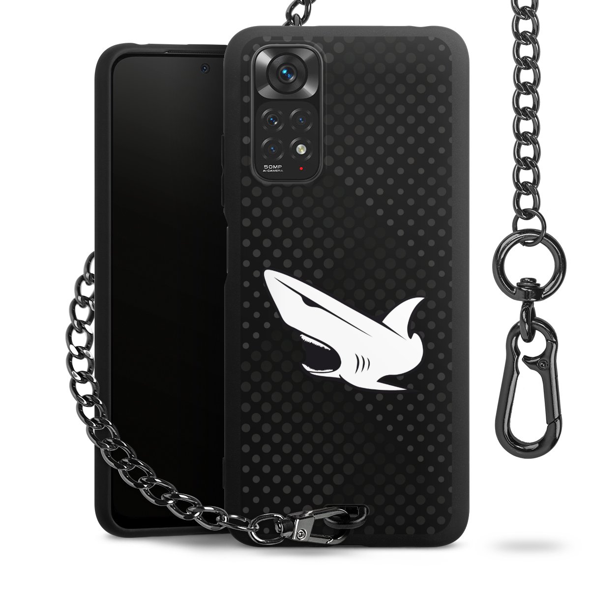 • Mattschwarze Handyhülle mit Metallkette