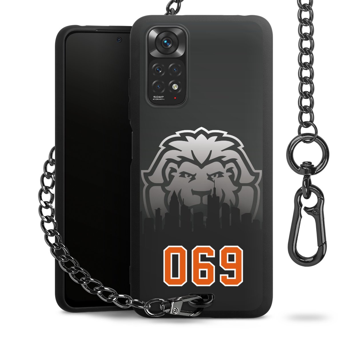 - Mattschwarze Handyhülle mit Metallkette