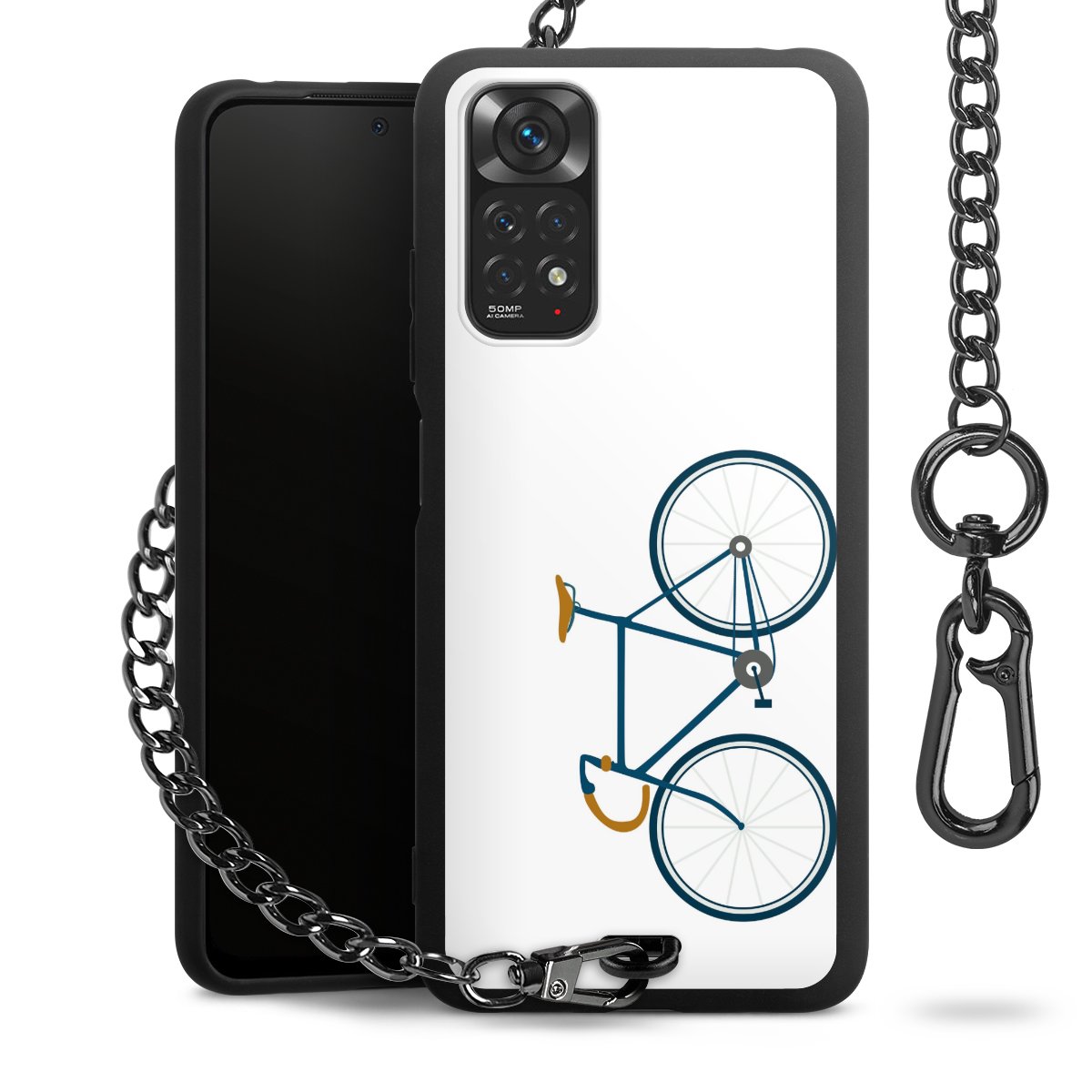 - Mattschwarze Handyhülle mit Metallkette