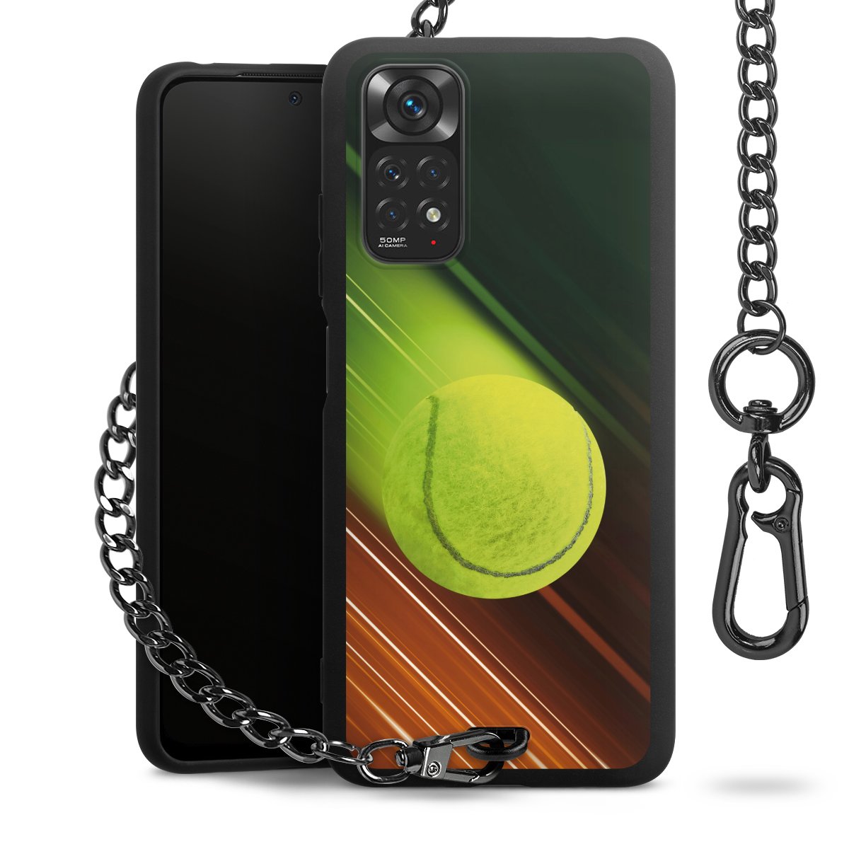 - Mattschwarze Handyhülle mit Metallkette