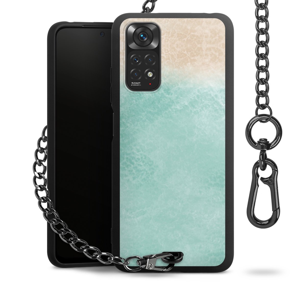 • Mattschwarze Handyhülle mit Metallkette