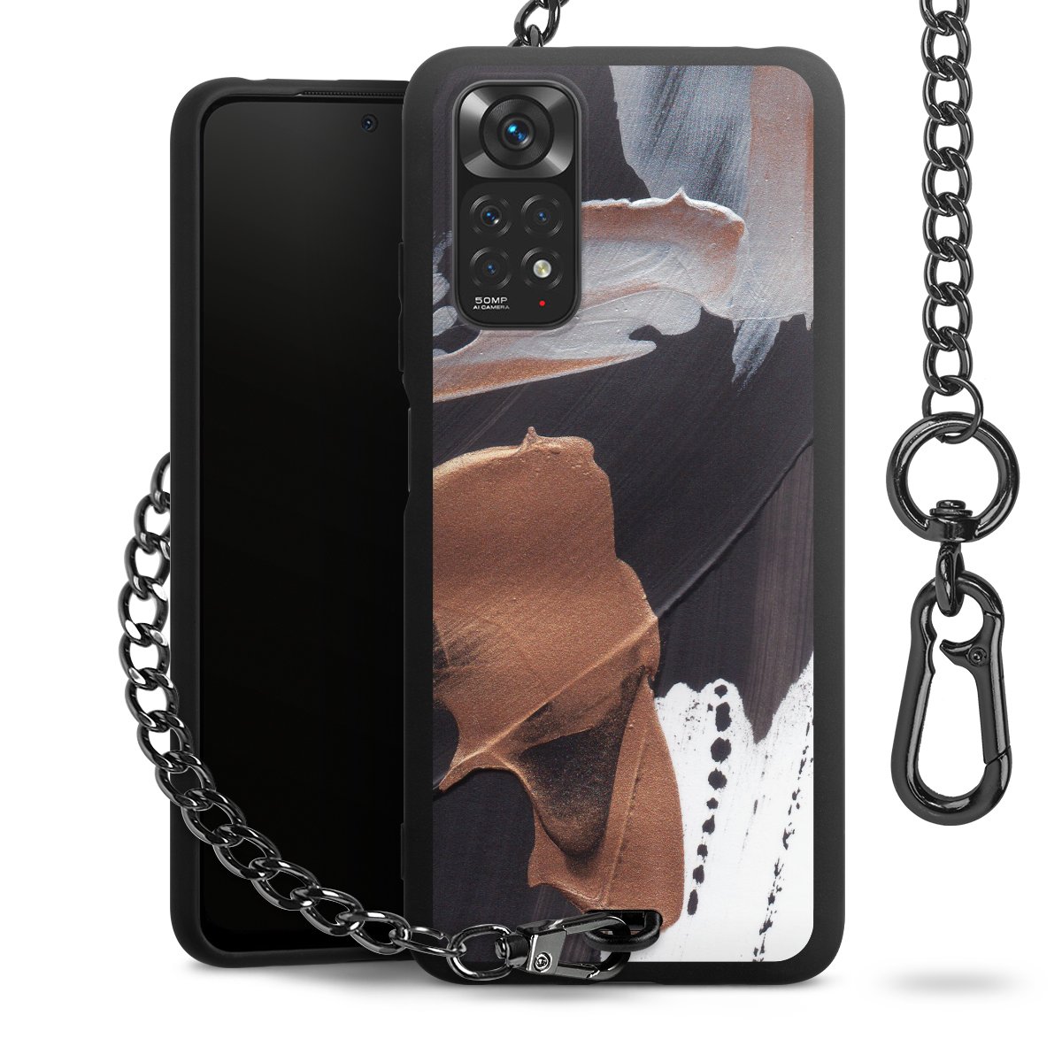 • Mattschwarze Handyhülle mit Metallkette