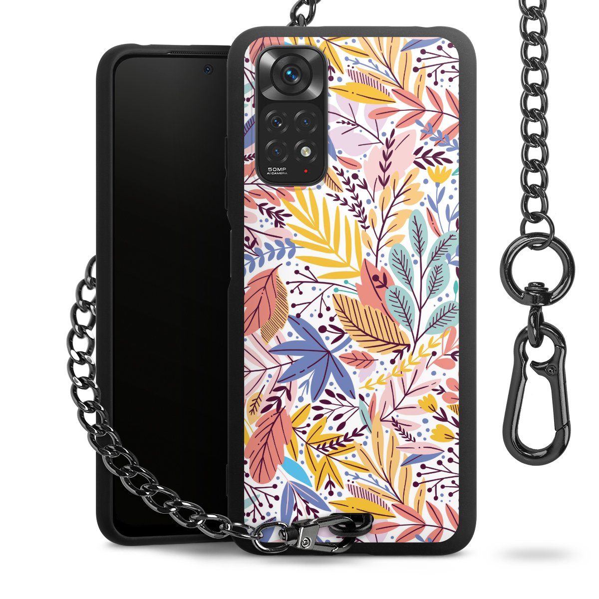 • Mattschwarze Handyhülle mit Metallkette