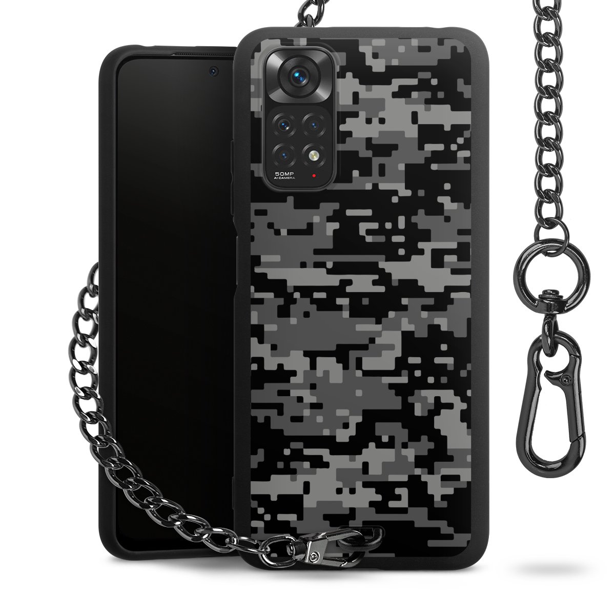 • Mattschwarze Handyhülle mit Metallkette