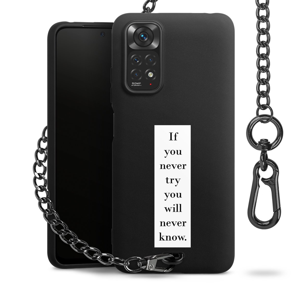 - Mattschwarze Handyhülle mit Metallkette