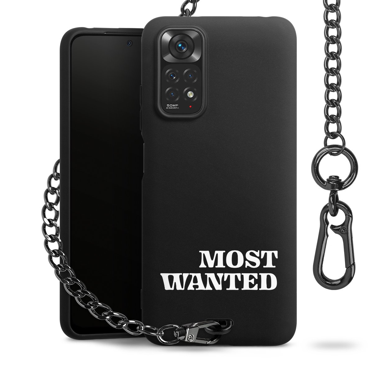 • Mattschwarze Handyhülle mit Metallkette