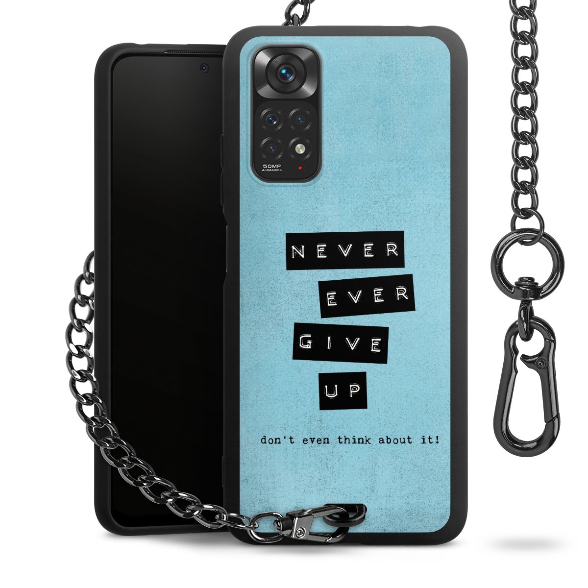 • Mattschwarze Handyhülle mit Metallkette