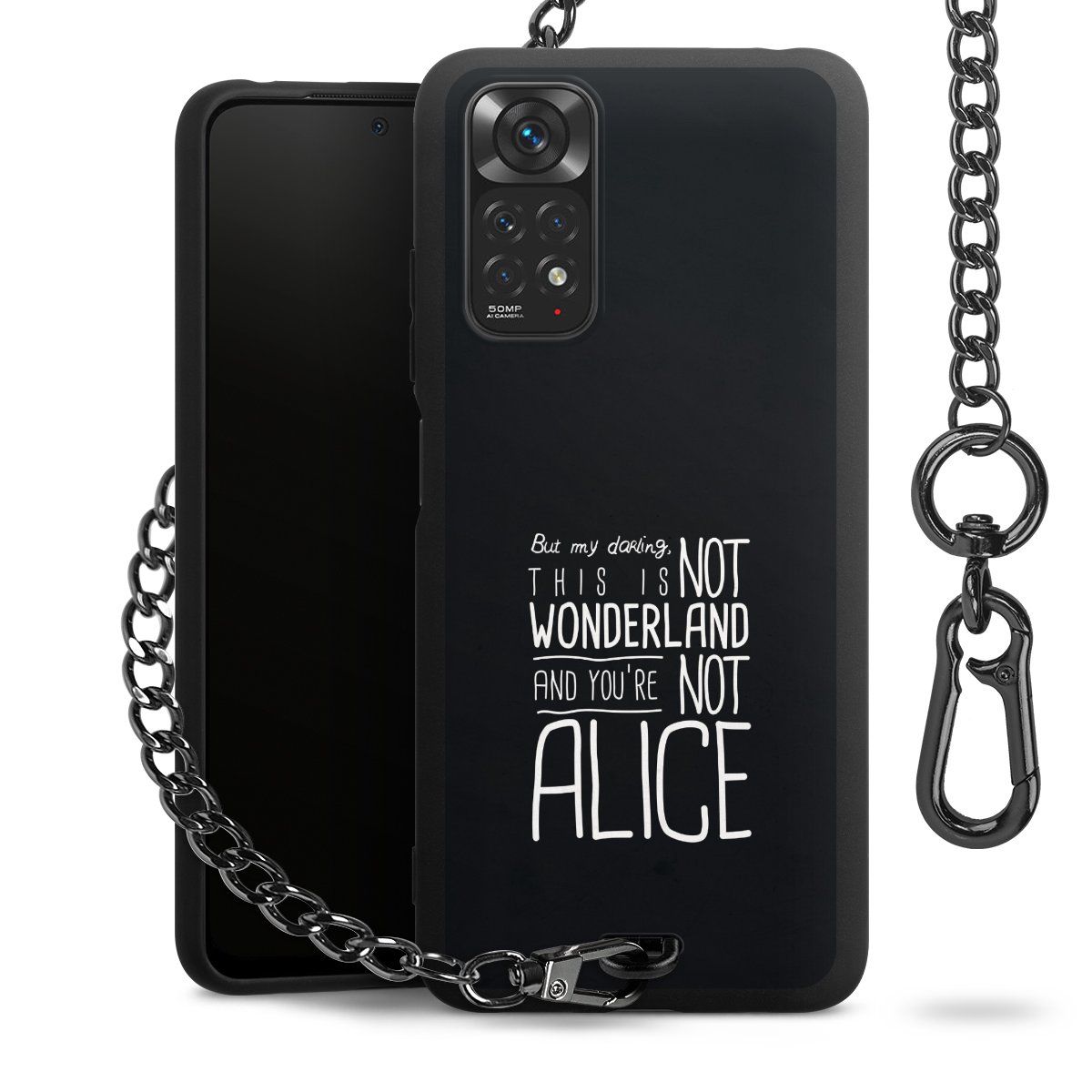 • Mattschwarze Handyhülle mit Metallkette