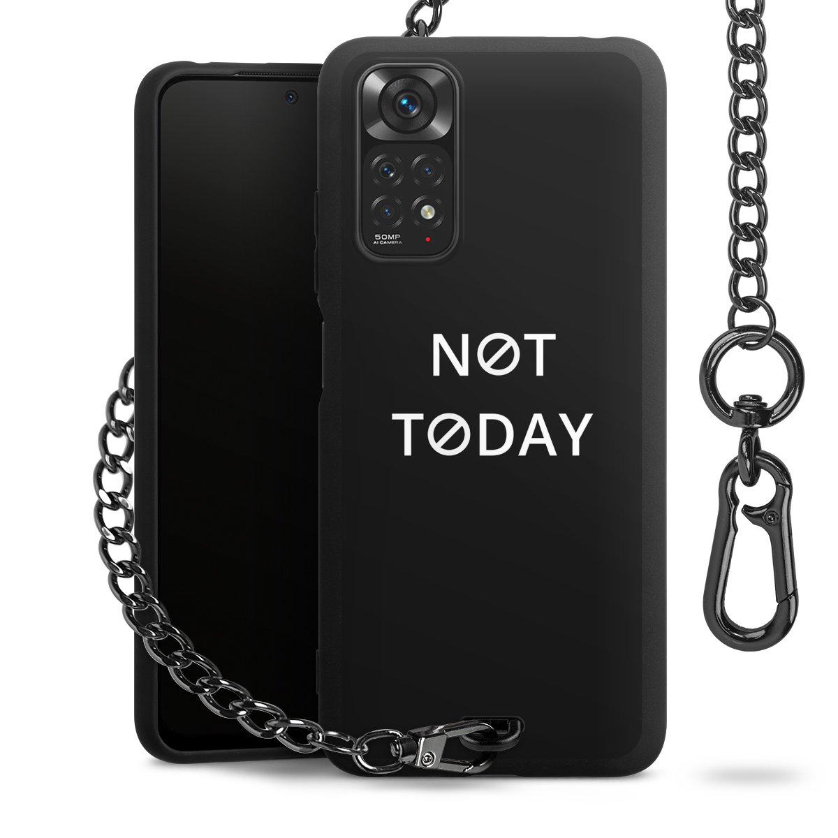 - Mattschwarze Handyhülle mit Metallkette