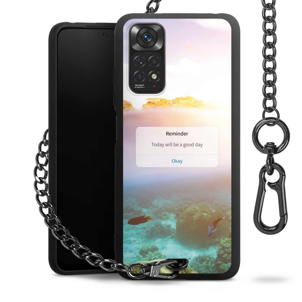 • Mattschwarze Handyhülle mit Metallkette