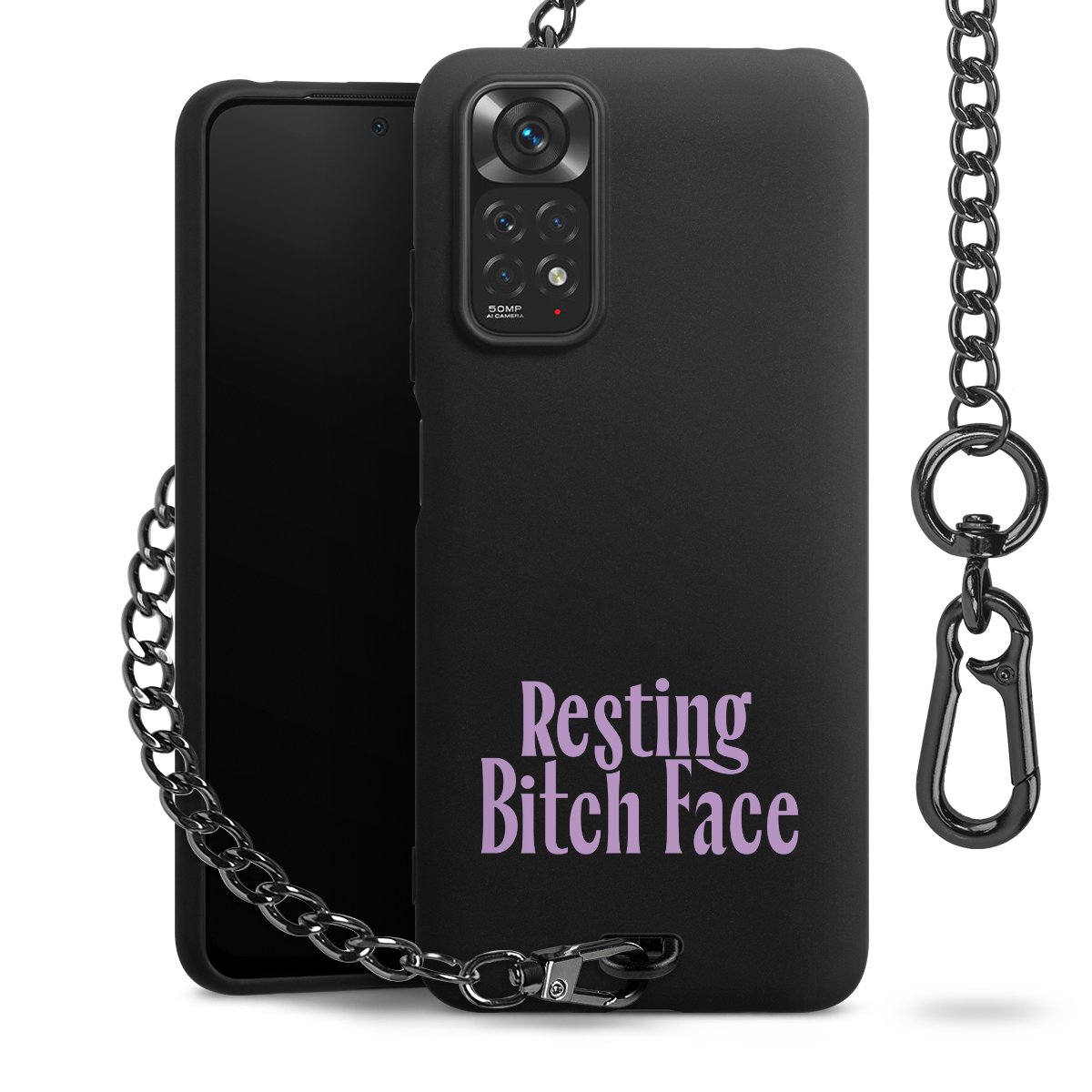 - Mattschwarze Handyhülle mit Metallkette