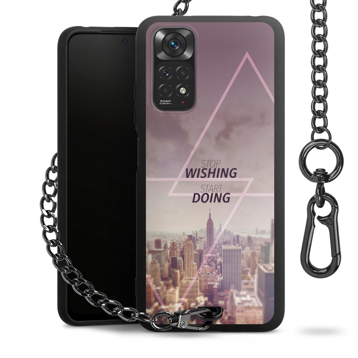 - Mattschwarze Handyhülle mit Metallkette