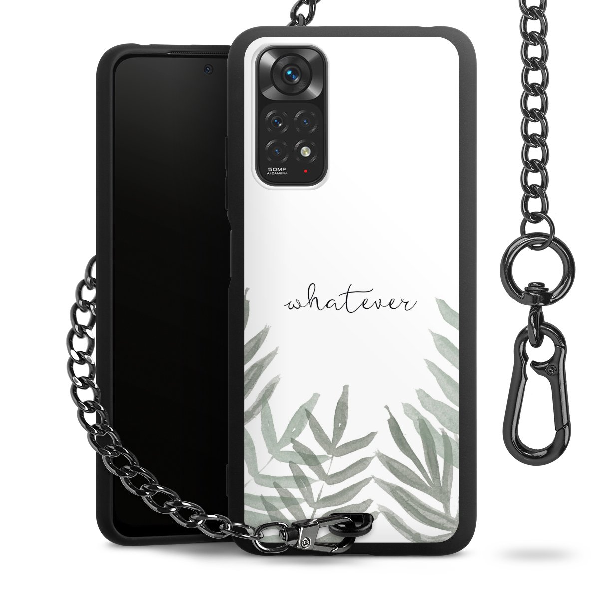 • Mattschwarze Handyhülle mit Metallkette