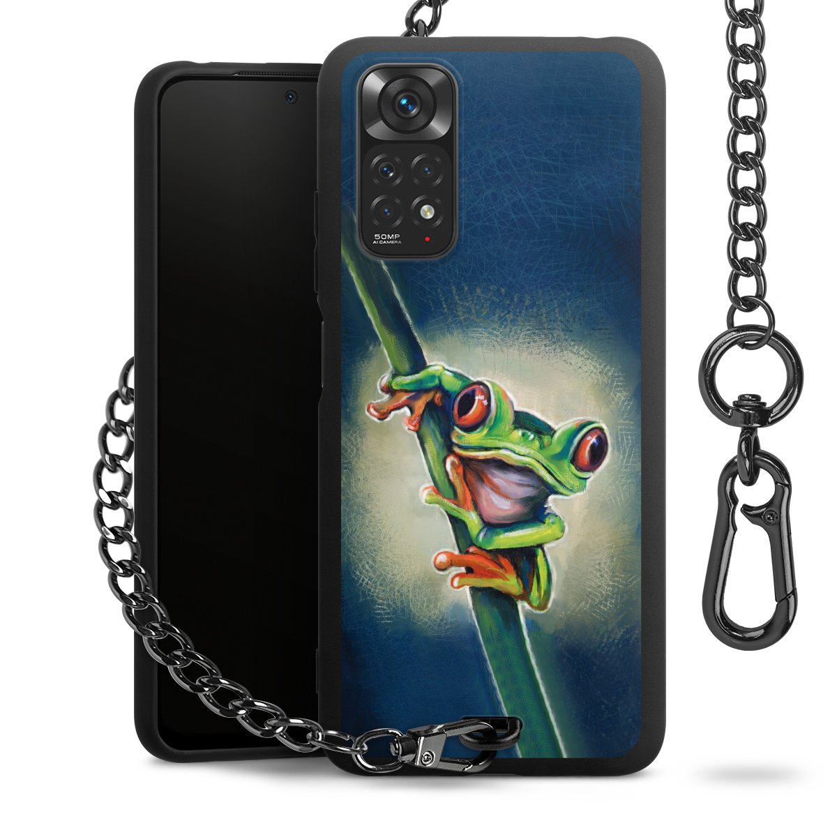 • Mattschwarze Handyhülle mit Metallkette