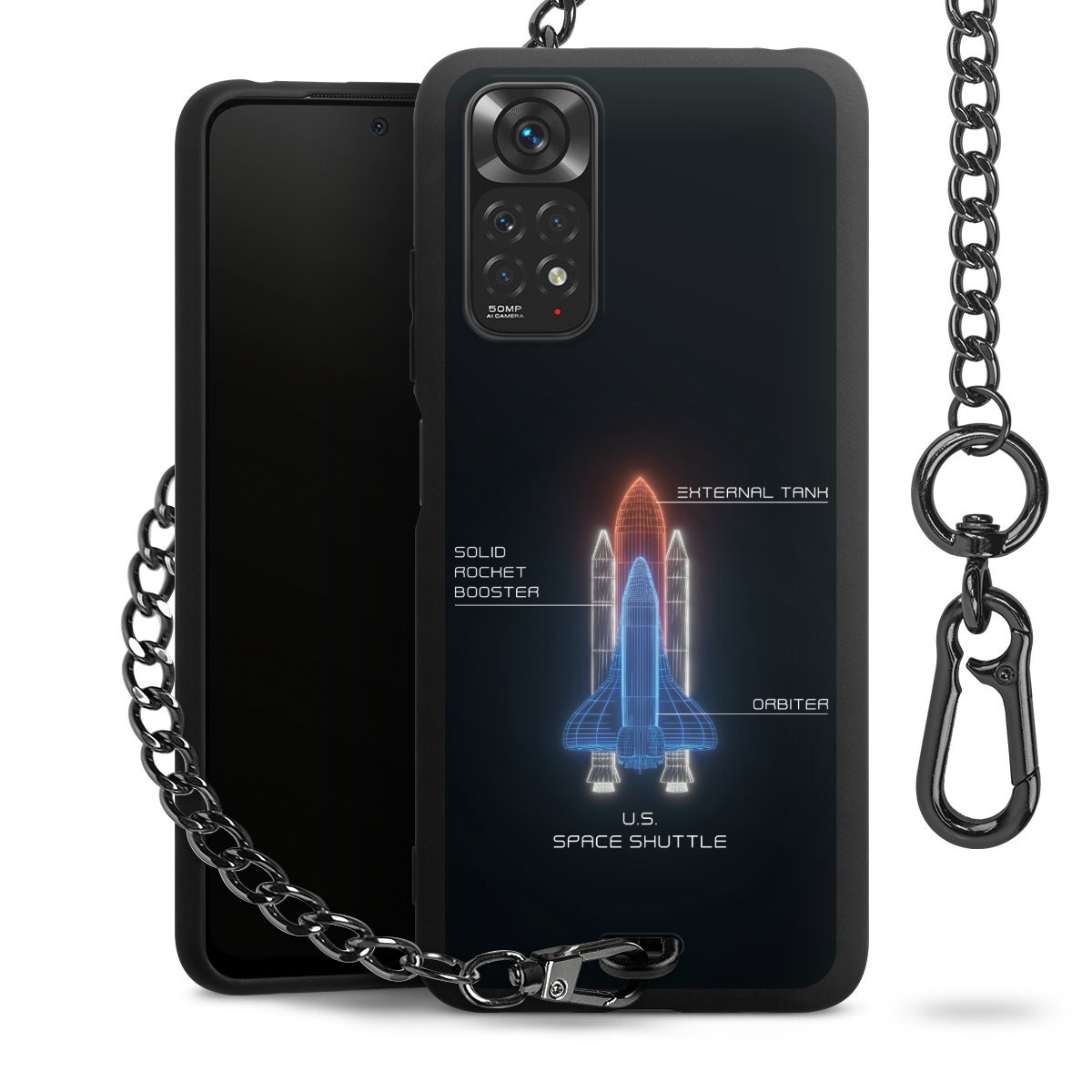 • Mattschwarze Handyhülle mit Metallkette