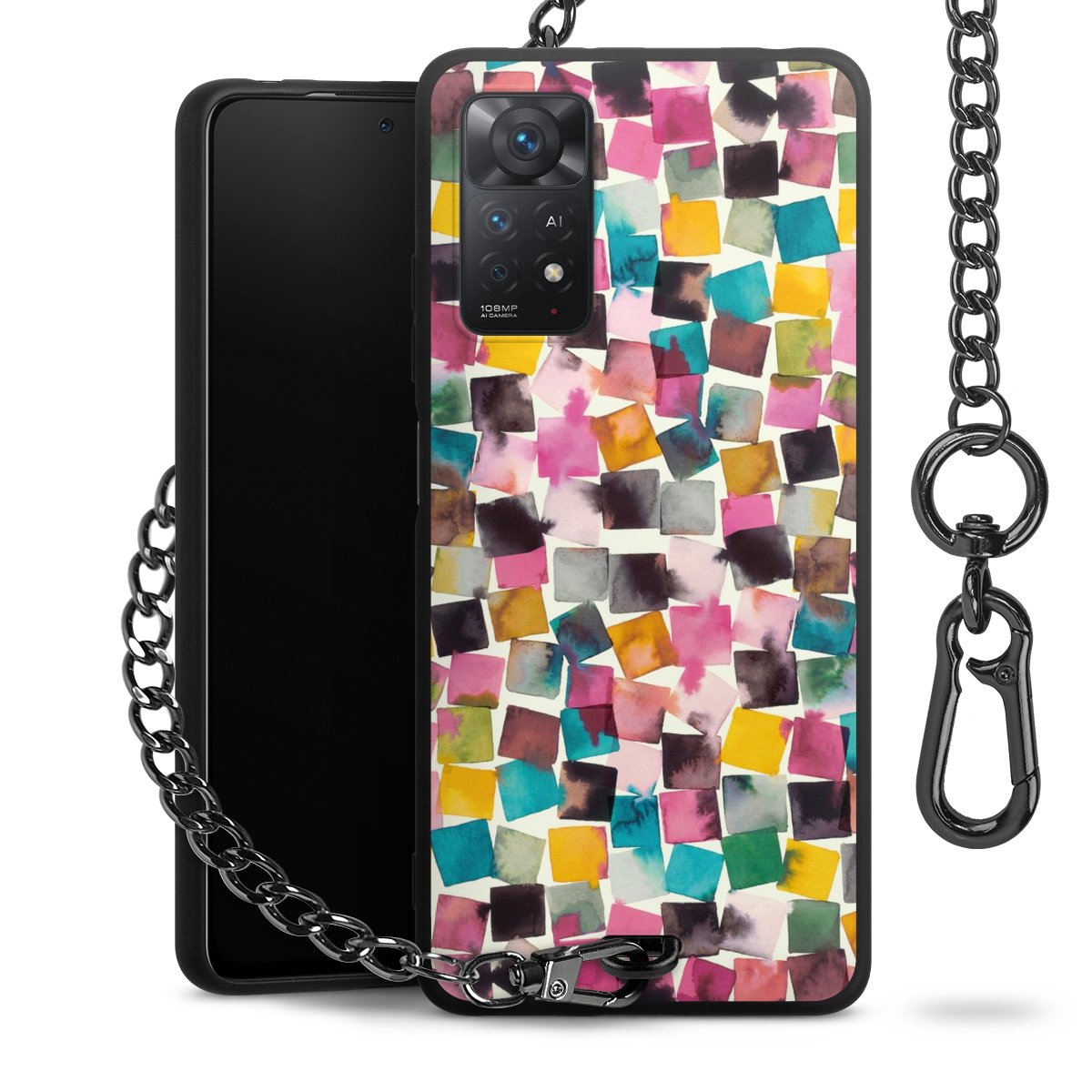 • Mattschwarze Handyhülle mit Metallkette