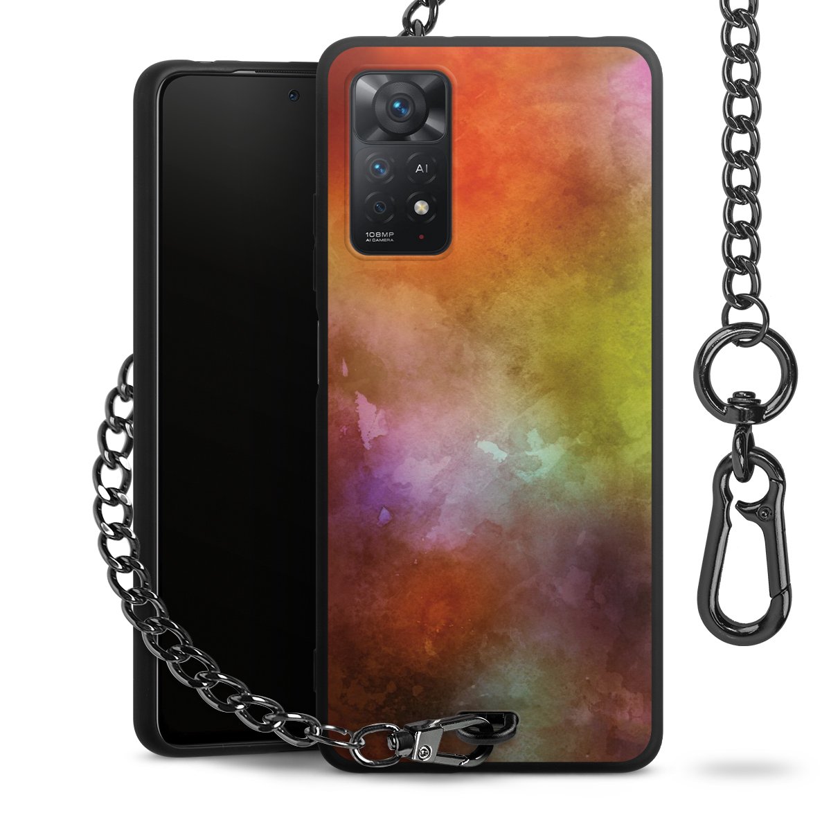 • Mattschwarze Handyhülle mit Metallkette