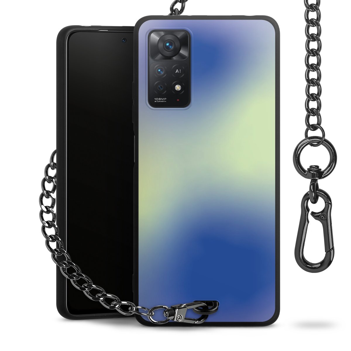 - Mattschwarze Handyhülle mit Metallkette